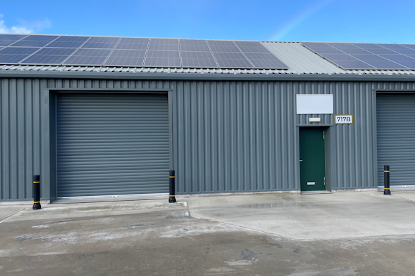 Refurbished industrial unit with solar PV, roller shutter door, office and welfare facility.